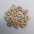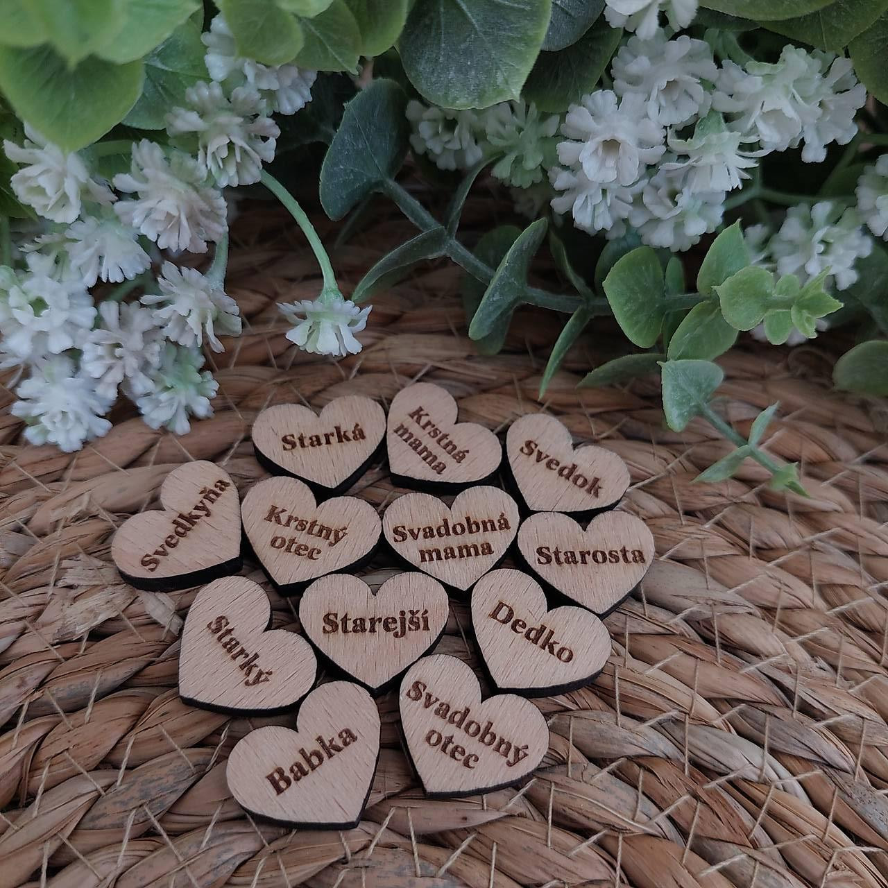 Drevené srdiečka na pierka s predvolenými textami, s vlastným textom, alebo bez textu v rôznych veľkostiach.