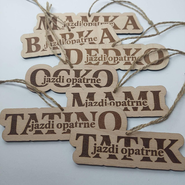 Drevená kľúčenka Jazdi opatrne s členmi rodiny.